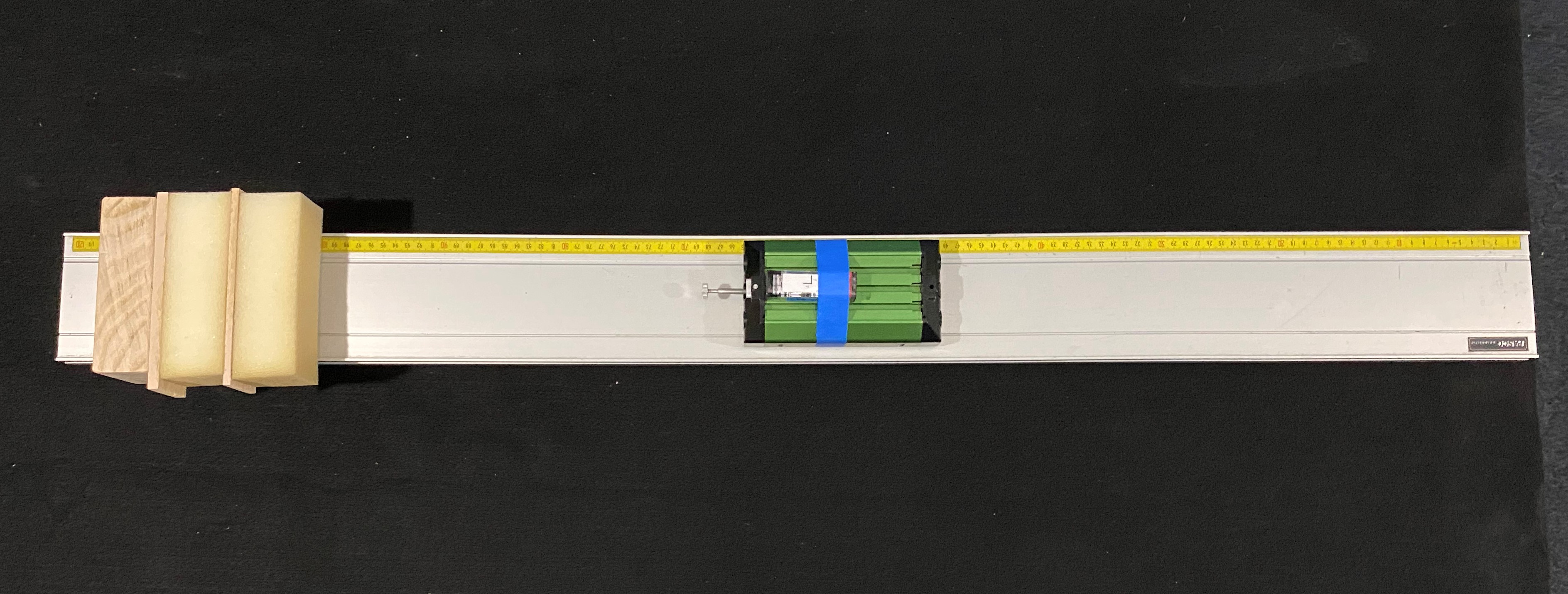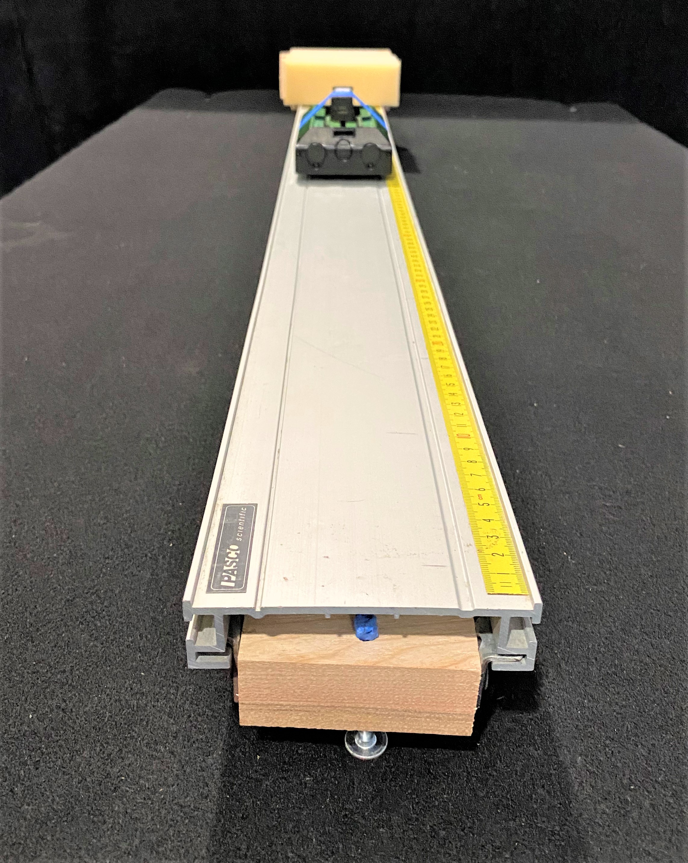 This is the Lab 10 Tier 1 Set-Up “A” of four set-ups. The mass and initial speed of the cart are varied.